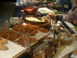 目の前であつあつ出来立ての料理を出してくれるライブパフォーマンスが大好評のホテル「ヴェルデュール」で約40種がビュッフェスタイルで食べ放題。料理は大好評でした。