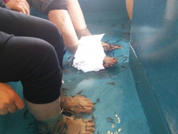 フィッシュ・セラピーは皮膚の古い角質をついばむことで肌をきれいにしてくれる魚です。貴重な体験ができました。