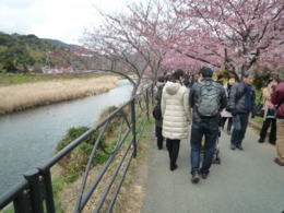 河津さくらは5~6分咲きといったところでしょうか。今年の開花も昨年と同様に遅れているようでした。河川敷のさくらはとても綺麗にさいてました