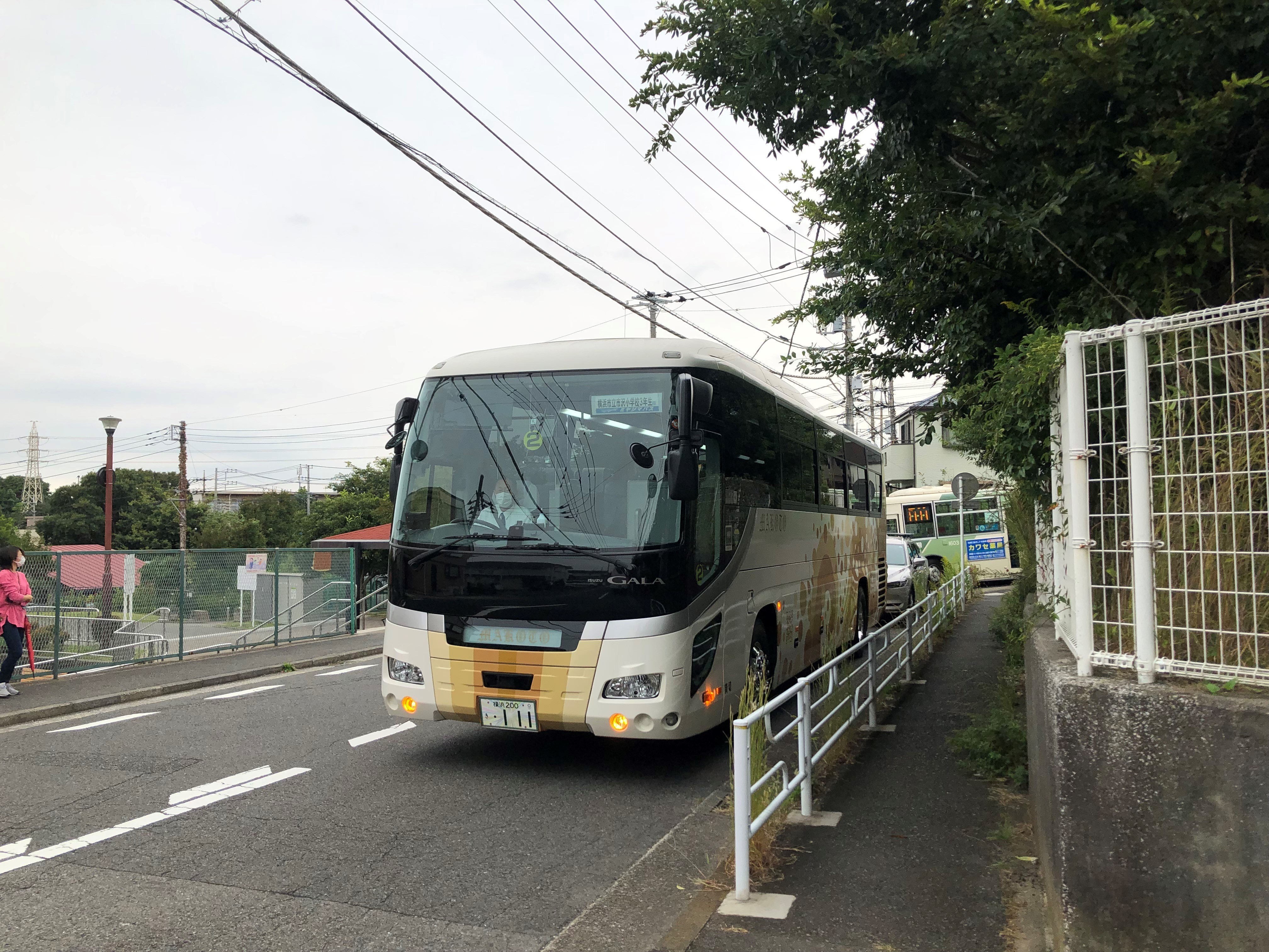 大型バス2台で出発!こども宇宙科学館でプラネタリウムの見学をして、港南台南公園から上郷森の家までハイキングを楽しみました。