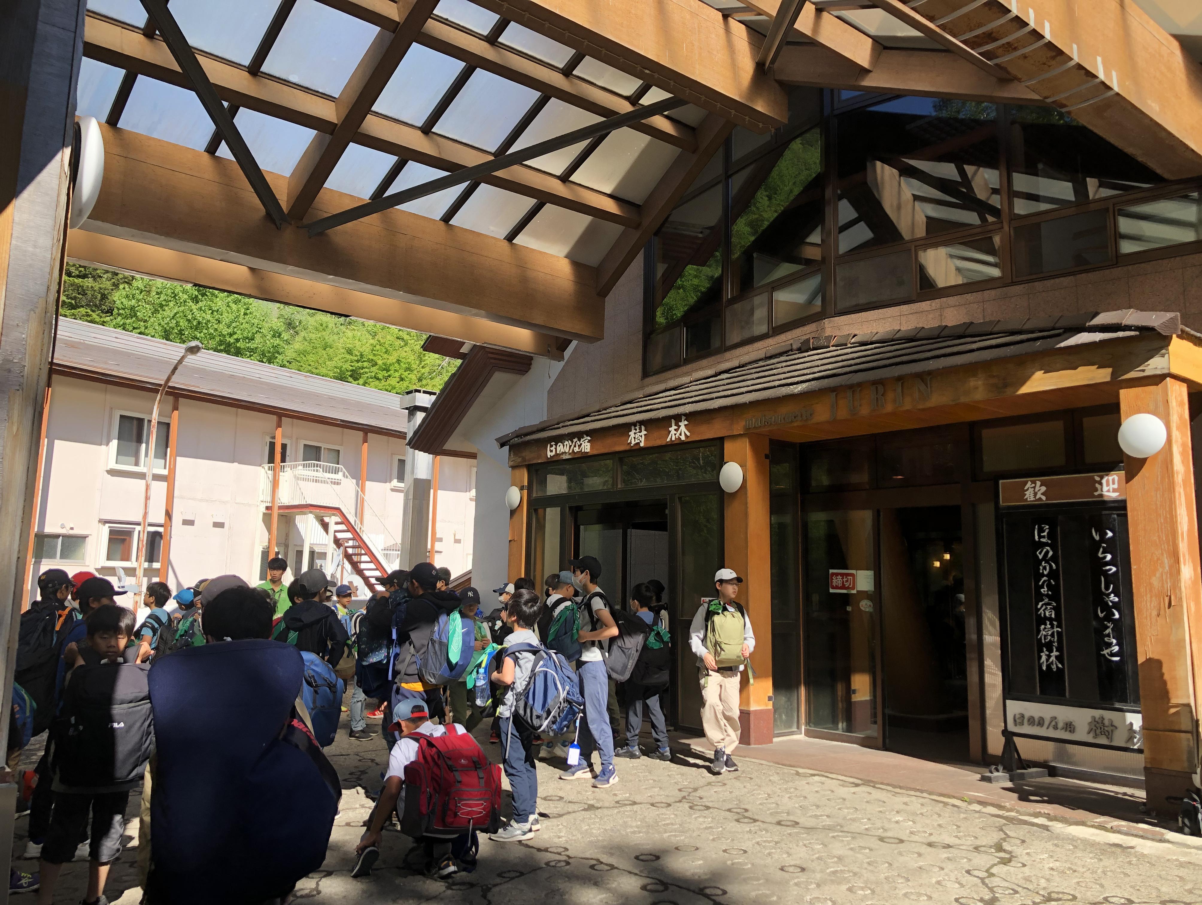 大型バス4台で出発!上郷森の家で宿泊体験学習を行いました。日帰りで体験されたお子様もおりましたが、155名様の参加となりました。