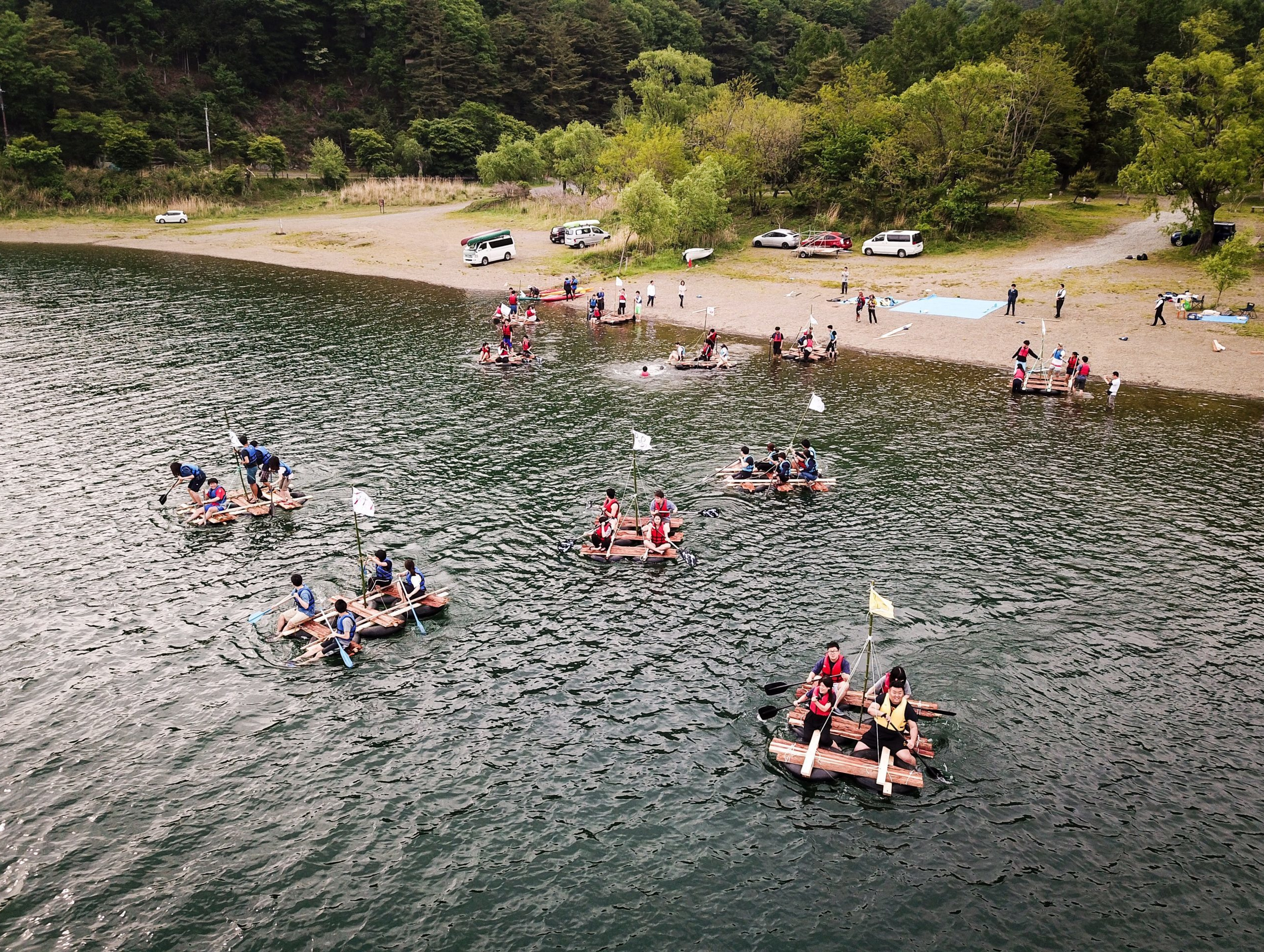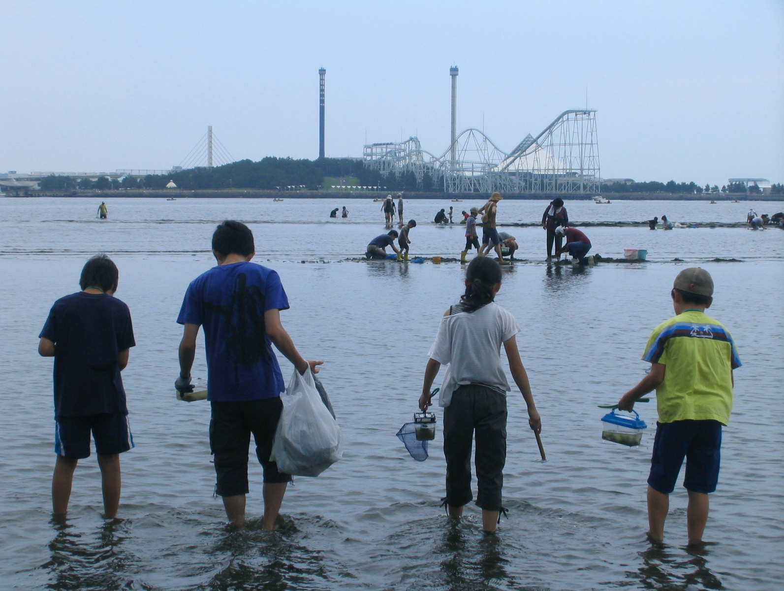 学校を出発してから電車で野島公園へ。天候も晴れだったので、千潟を観察したり、いかだ作りに挑戦したり、たくさんのことを学べました。